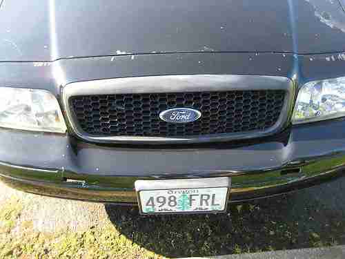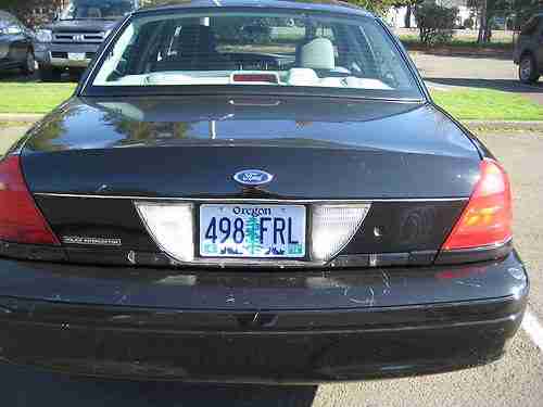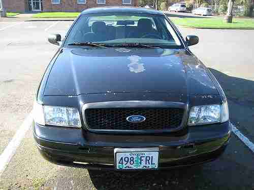 2004 Ford Crown Victoria P71 Police Vehicle Dual airbags, ABS, Air Conditioner, Power Drivers Seat with power lumbar support, Power Windows, Tilt Wheel, AM/FM Radio, Power Locks, Power Mirrors, Automatic Transmission, Rear Window Defogger. Engine and Transmission are in excellent condition. Purchased from Salem Oregon Police Auction on 3/22/2012. Was a City of Hillsboro Oregon Police Detective vehicle. I have installed a New Costco battery. Black 4 door sedan, interior color is Gray. 8 cylinder 4.6 engine. Has 2 quarter size metal antennas plugs in the roof from police antennas. Has 2 spotlight ready holes on drivers and passengers side. The body is straight. The rear window switches and door handles are non operational. Winter tires with 80% tread on them. Car is located at 11635 se Aerie Crescent rd. Happy Valley OR 97086. The clear coat on top of the paint is peeling.