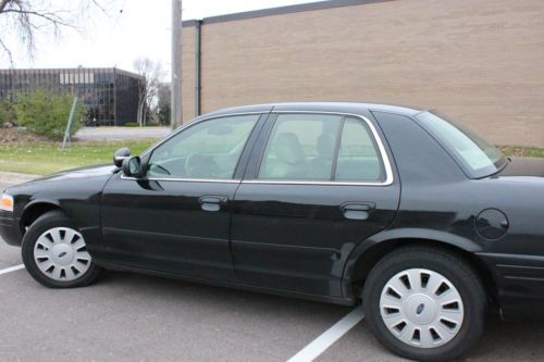 Bought from the State Patrol in 2011. This car is a factory ordered complete black (UA) Crown Victoria. I completely gutted and redid interior, sparing no details, everything is factory looking and functioning, including the floor shift interlock. This is the 2nd time I've installed a sport interior in a P71 and the 6th time I've completely redone a P71 interior. This Crown Victoria was ordered with a factory police wiring package that is still in place and has all of the strobes still attached. Single officer driven for lifetime of duty and they take their cars home, no light bar installed on top of car, was a stealth slick top. Two evenly spaced centered NMO mount holes on trunk and one rear centered hole on roof. One accident on VIN, the car was hit on the left rear panel, minimal impact. Damage was repaired and put back into service for a few months. Car was bought