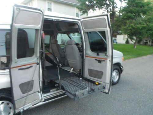 2003 FORD E-150 HANDICAP VAN WHEEL CHAIR LIFT 215-287-6060 THIS IS A 2003 FORD E-150 CONVERSION VAN WITH A HANDICAP LIFT. THE LIFT FOLDS DOWN FROM THE PASSENGER SIDE DOOR. THE DOORS ARE RAISED INTO THE ROOF TO GIVE YOU EXTRA HEAD ROOM. THERE IS OVER 72 INCHES IN THE DOORWAY. THE LIFT IS POWER. WITH THE PUSH OF THE BUTTON THE LIFT WILL FOLD DOWN. THE INTERIOR OF THE VAN IS PERFECT. THE GREY CLOTH INTERIOR IS IN GREAT SHAPE, NO RIPS TEARS OR HOLES. THERE ARE FOUR Q-STRAINTS WITH THE VAN. THE VAN HAS A TV THAT WORKS PERFECT. THE VAN COMES WITH ALL POWER OPTIONS, EVERYTHING WORKS. THE EXTERIOR OF THE VAN IS ALSO IN GOOD SHAPE. THERE ARE A FEW SCRATCHES ON THE VAN, THE PASSENGER SIDE. IF YOU WOULD LIKE THOSE FIX THAT IS NOT A PROBLEM. THERE ARE FOUR BRAND NEW TIRES ON THE VAN. YOU WILL LIKE THE WAY THIS VAN LOOKS AND RUNS. PLEASE CALL WITH QUESTION. IF YOU NEED SHIPPING WE CAN HELP WITH THAT. ED 215287-6060 |