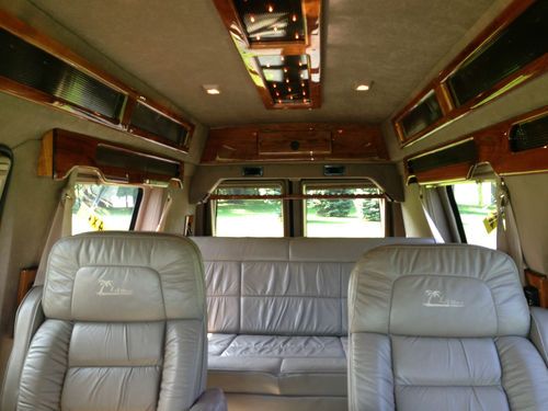 This high top conversion van is equipped with a strong V-10 engine, and Quigleys "SUPER TRAK VAN" 4x4 system. This is a go anywhere and be comfortable vehicle. The high end LA West conversion includes limo lighting, rear entertainment, and a sofa that turns into a bed at the flip of a switch.