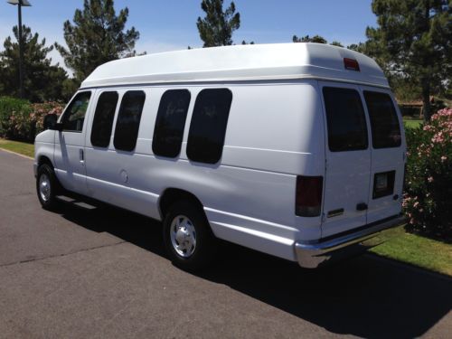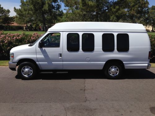 I am selling a 1 owner 2008 Ford E-250 with raised roof conversion. This van has seating for 12 passengers plus a luggage wall that separates the passenger seating from the stacking and storage area in the rear of the van. The vehicle does have a custom 16" fiberglass raised roof. I purchased this van new in 2008 and it has been meticulously maintained during the past 6 years. It does not have any mechanical issues at this time and is up to date on all service. All original service handbooks and manuals are included with sale. Tires have less than 2000 miles.