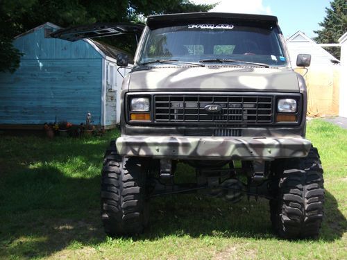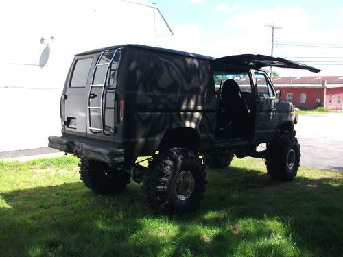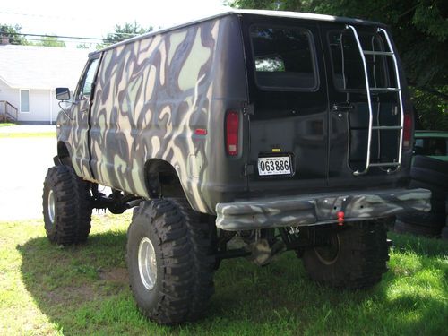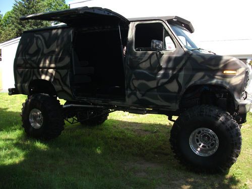 Hi I have this very cool van for sale . It Has a rebuild 460 BB roller Motor. A rebuild C6 Trans, Dana rears front and back 410 gears. Has a griffon radiator and trans cooler. The Brakes have been gone through stops great. New starter fuel pump alternator u joints exhaust tires. The Tire are 44" with lots of tread on them. Its a 18" custom suspension lift and 2" body Lift. It runs and drives great gets attention everywhere it goes. The back seat folds to a bed. Has a gull wing side door with dual pistons to hold open. Interior is black and camo. The body is an e150 and the frame is a F350. The engine has about 500-600 HP. It has header into 2 1/2" exhaust. The frame is perfect no rust. The body on the outside looks great there is some rust on the underside not that bad. If you live nearby you're more than welcomed to look at van before bidding. No reserve so bid to win.