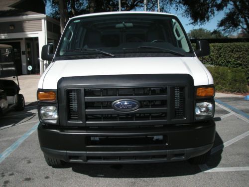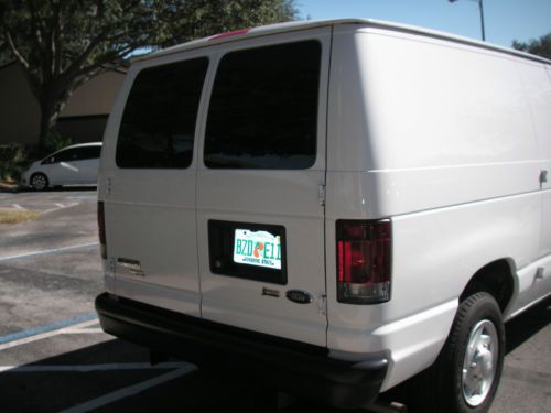 Here we have a very clean 2011 Ford E150 Ford van. Van has interval wipers, Hinged side cargo doors, New never used Michelin spare tire, Sealed halogen headlamps, Air cond., Tilt steering wheel, Dual vinyl bucket seats, am/fm stereo with clock, Vinyl floor covering front and rear, Glove box with 12 v pwr pt, alternator 120 amp, Aux transmission cooler, 33 gal fuel tank, Side impact door beams, 4 wheel anti lock disc braking system with AdvanceTrac RSC, Flex fuel, 138 inch wheel base, 4.6 L EFI V8 engine elect. 4-Speed auto O/D Trans, Black grill and bumpers, Michelin Tires. There is one very small dent from somebody's shopping cart on the passenger side rear. Very small dent; did not nick paint. See pictures. We have taken very good care of van. All oil changes and maintenance done at dealerships. There is a loan on van thru Ally Ford Motor Credit and will be paid off at purchase. Just had multi-point inspection done on van 1/20/14. All checked out great; have invoice. Front windows are tented legal and rear windows are legal limo tent done by Midas. I have invoice and lifetime warranty. The van also has factory light-wire plug ran for towing vehicles. see all pictures