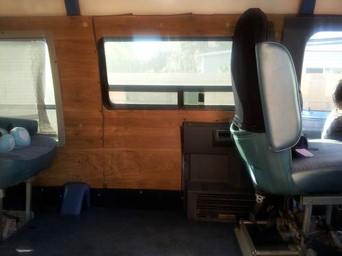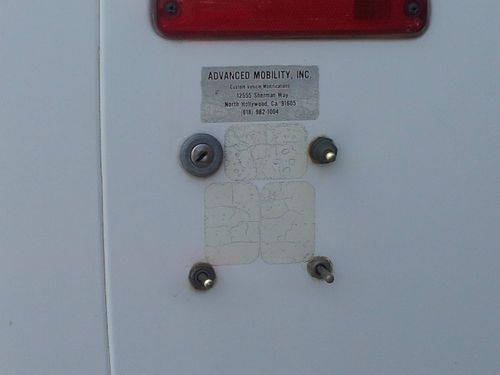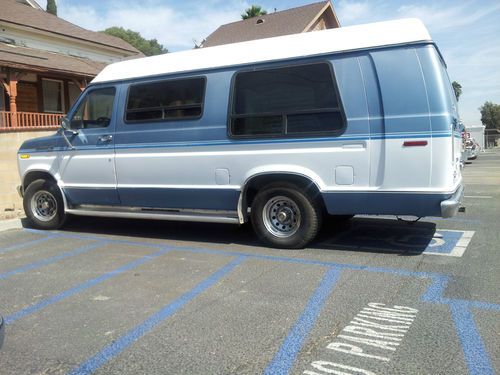 Features higher roof top, automatic wheelchair lift, driver conversion meaning gas and brakes can be used with hand control if you are disabled driver. Can be used regularly as well. It is blue and white no visible rust or dents. Just had water pump replaced, moter checked.