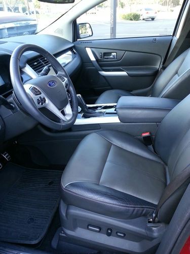 2012 Ford Edge Sport All Wheel Drive in Red Candy Metallic Tinted with full black leather interior. Car glides and is in excellent condition, balance of factory warranty remains with balance of extended warranty and pre-paid maintenance available.