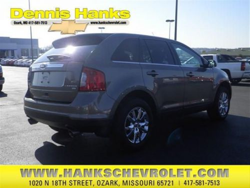 Welcome to Dennis Hanks Chevrolet where youd send a friend! Look no further than your Ozark Chevrolet dealer for new and used cars. We also proudly serve Springfield Nixa Branson and Southwest Missouri Chevrolet customers. We are proud to be celebrating our 28th anniversary as a 3rd generation family-owned store. For further assistance contact us by phone or email and our friendly staff will help you with all your auto needs. Right car! Right price!! Ford has outdone itself with this rock-hard Edge... All Wheel Drive!! One of the best things about this 2013 Ford Edge Limited AWD is something you can't see but you'll be thankful for it every time you pull up to the pump** SPECIAL WEB PRICING* Safety Features Include: ABS Traction control Curtain airbags Passenger Airbag Dusk sensing headlights...It has nice features like: Leather seats Bluetooth Power door locks Power windows Heated seats... Dennis Hanks Chevrolet, "Where you'd send a friend."