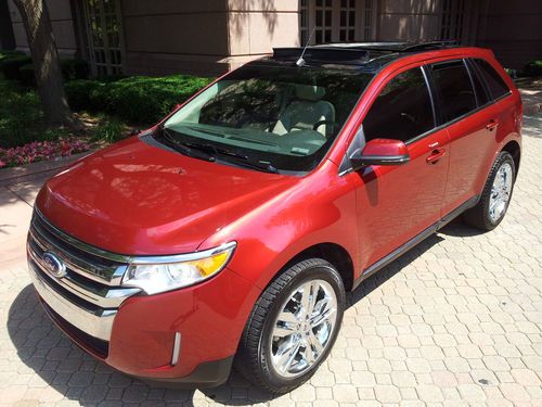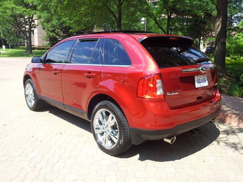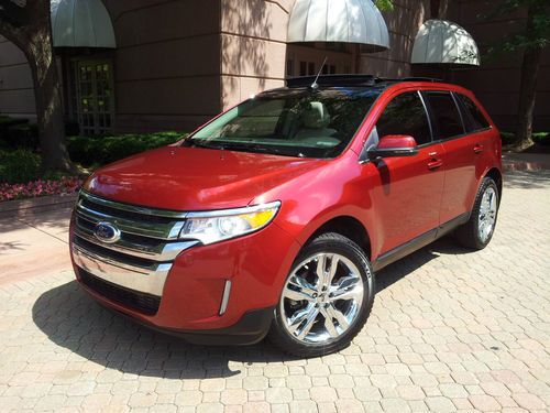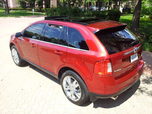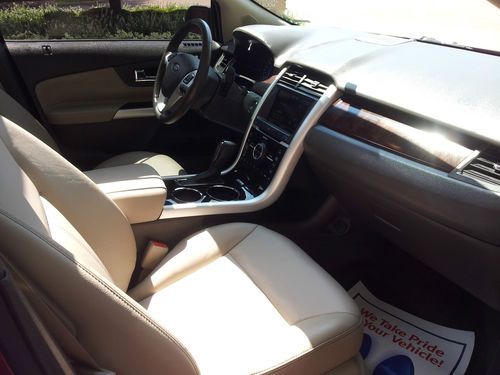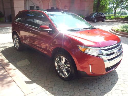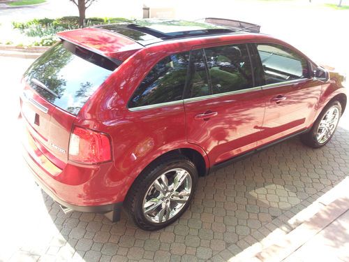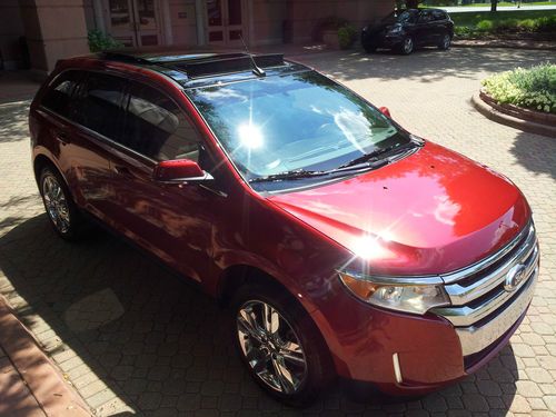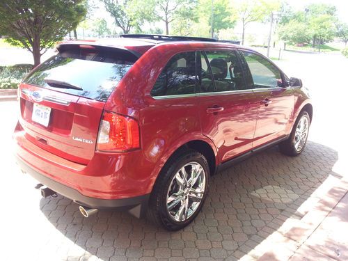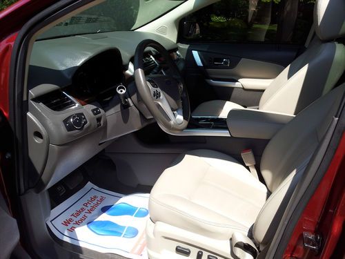 You are viewing an ULTRA sharp RED matched with a Gray leather interior 2013 Ford EDGE LIMITED IN GREAT condition!!!........Loaded!!!......XENON LIGHTS.............Only 14067 miles.................These SUV are in demand and for good reason.........FWD(FROUNT- Wheel Drive)--..............Beautifully GRAY LEATHER PREMIUM leather seats ---POWER drivers and passengers HEATED leather seats..............TURN by TURN Navigation include the visual map display.....KEYLESS IGNITION(START THE CAR WITH A PUSH OF A BUTTON ...REMOTE STARTER... ALSO PLAYS MP3'S/REWINDS LIVE MUSIC/PAUSES LIVE RADIO AND IS QUITE POSSIBLY THE MOST ADVANCED MEDIA SCREENSYSTEM OUT THERE IN THE COUNTRY AND IS LINKED TO FORD-MY TOUCH WHICH ALLOWS YOU TO SET PARENTAL CONTROLS ON EVERYTHING FROM STEREO VOLUME TO THE SPEED WHICH THE VEHICLE IS TO BE DRIVEN......................Cruise Control.............MOON POWER ROOF (Ford's exclusive full glass roof which brings in a gorgeous welcome atmosphere to THE CAR................SYNC POWERED BY MICROSOFT.............Rear back-up camera which displays live video feed on your NAVIGATION screen when vehicle is in reverse mode..............REAR back up sensors which alert you when backing up to an object by sounding off an alarm............FOG lights.........20" Premium factory wheels with 20" Performance Pirelli tires............Am/FM/cd.............Power heated mirrors.....................Bluetooth connectivity..........POWER retractable lift gate with 3 control sources and comes in very handy...........Premium Ford SOUND system............DUAL POWER SEATS seats............Cruise control...........Vehicle anti-theft..............Keyless entry keypad ( set of numbers located on your driver's door which allow you to access the vehicle in case of a lockout).........Fog Lights...........Own the very latest in technology and style with the new redesigned Ford EDGE (you will be impressed!!)...BEST COLOR COMBO OUT THERE PERIOD with the ROOF!!