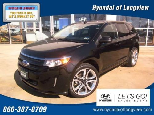 2013 Ford Edge 4dr Sport FWD Hyundai of Longview presents this CARFAX 1 Owner 2013 Ford EDGE 4DR SPORT FWD with just 23408 miles. Represented in BLACK. Under the hood you will find the 3.7L V6 24V MPFI DOHC coupled with the AUTOMATIC. Options and Safety Features: Nicely equipped with (2) rear seat lower anchors & tethers for children (LATCH) 4-wheel anti-lock disc brakes AdvanceTrac w/roll stability control (RSC) Child safety rear door locks Height-adjustable front seatbelts w/Beltminder Hill start assist Occupant classification system Personal Safety System -inc: seatbelt pretensioners load-limiting retractors dual-stage front air bags driver seat position sensing crash severity sensing Rear-view camera Reverse sensing park assist system Safety Canopy for (2) rows w/rollover sensor Side-impact air bags SOS Post Crash Alert System Tire pressure monitoring system. Awards And Accolades: Ward's 10 Best Engines Hyundai of Longview WE WILL BEAT ANY DEAL! At Hyundai of Longview our goal is to provide you with an excellent vehicle purchase and ownership experience. For the finest in personal customer service please contact the Internet Department directly through this website. Also please note we take great care to keep our listings up to date however our inventory changes daily and not all inventory is online. If you do not see what you are looking for then please call. We look forward to providing you with excellent customer service and welcoming you as a Hyundai of Longview client. You can reach us at 888-464-8850 or by visiting us online at www.hyundaioflongview.com. Please call for more information. Please call us for more information. "You pick it out and We'll work it out!"