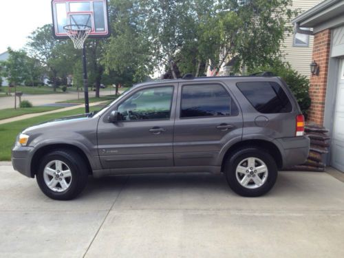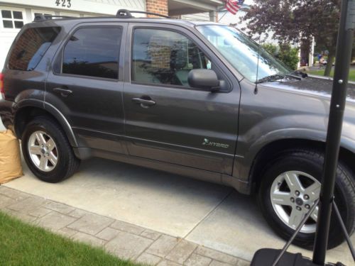 I am selling my 2006 Ford Escape Hybrid with 121,850 miles. I hate to part with it and it's been treated with tender loving care. It has newer Yokohama tires, brand new 4 disc brakes, brand new Compression Cooling Pump and brand new Canister Vent Solenoid. It features a 2.3L 140Cu Inch, Inline 4 Electric/Gas DOHC Naturally Aspirated. It comes with Navigation provided by compact discs divided by different sections of the country. Power moonroof, leather seats and AWD. It goes through snow like butter. It also has a towing package. There are some scratches on the bumper and on both sides of the car. The body is in average shape. There are some small minor dents from a recent hail storm. I am the 2nd owner since purchasing the truck in July 2007 and have kept it well maintained and have completed all required maintenance services. There has never been any smoking in or around the truck. The sale has to be funded through Paypal, Certified Check or certified bank check and would have to be picked up at my location.