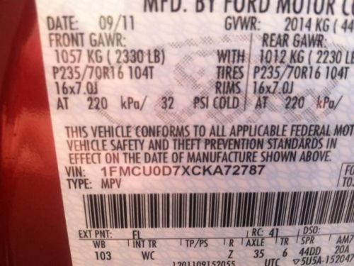 VIN (Vehicle Identification Number): 1FMCU0D7XCKA72787