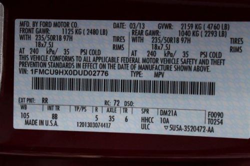 VIN (Vehicle Identification Number): 1FMCU9HX0DUD02776
