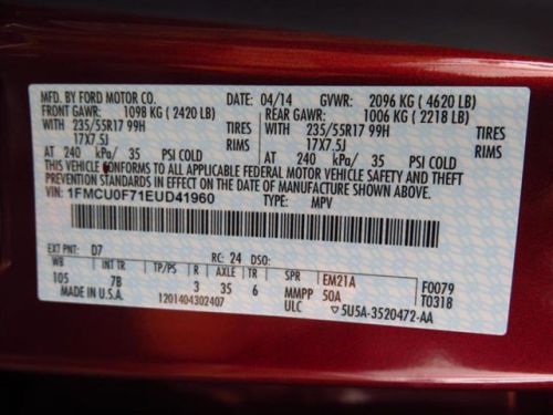 VIN (Vehicle Identification Number): 1FMCU0F71EUD41960