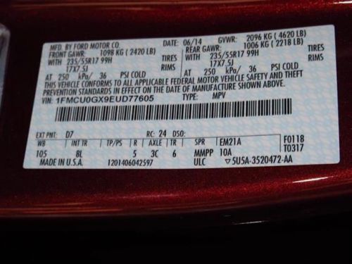 VIN (Vehicle Identification Number): 1FMCU0GX9EUD77605