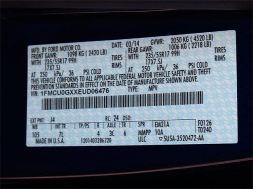 VIN (Vehicle Identification Number): 1FMCU0GXXEUD06476