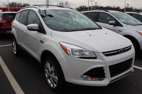 This 2014 Ford Escape 4dr 4WD 4dr Titanium 4x4 SUV features a ENGINE: 2.0L ECOBOOST 4cyl Gasoline engine. It is equipped with a 6 Speed Shiftable Automatic transmission. The vehicle is White Platinum Tricoat with a Charcoal Black Leather interior. It is offered with a full factory warranty. - Air Conditioning, Cruise Control, Tinted Windows, Power Door Locks, Roof Rack, Tachometer, Digital Info Center, Tilt Steering Wheel, Steering Wheel Radio Controls, Side Airbags, Keyless Entry, Security System, ABS Brakes, Traction Control, Dynamic Stability, Rear Defogger, Fog Lights, Intermittent Wipers, 19 inch Alloy Wheels, Leather Interior Surface, Four Wheel Drive -
