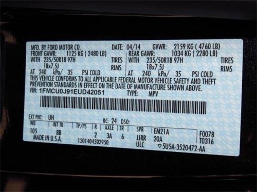 VIN (Vehicle Identification Number): 1FMCU0J91EUD42051