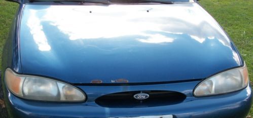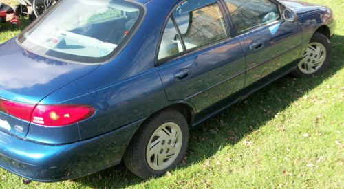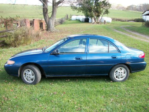 Here is my brother in law's 1999 Ford Escort. Runs and drives well. Brakes are good. Some rust, dings and scratches, as seen in pictures. Rockers have rust holes, as seen in pictures and there are some rust holes and spots in the passenger side floor pan. Windshield is cracked. Rear of headliner is sagging down. Escort gets great gas mileage, 38mpg +. Recently drove car from Chicago to Scranton, PA, the WV and back to PA with no issues. Tires are good with plenty of tread, fronts are weather checked, rears look nearly new. Current Illinois Emissions test PASSED. Front wheel bearings replaced in the last 10 months. Rear struts are tired. This is a dependable, great gas mileage car. Grey interior. NEW PICTURES!!. Serious bidders only, please. This is a 7 day sale. NO RESERVE!!! Car comes with keys, Clear Illinois title and Bill of sale. Happy bidding!!