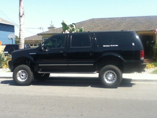 Fully loaded 6.0 diesel Excursion, custom exhaust, towing brakes, custom Weld Wheels, 35" tires, dual bilstien shocks, 4" lift NO SAG, tows like a dream, tinted windows, leather interior, third seat, nice interior mats, DVD player, A/C ice cold, All scheduled maintenance, All records, Custom wheels, One owner, Title in hand, Well maintained. This is my baby, well loved, and cared for...but it is time to move down in size and see what the future holds. Serious only..if it is listed IT IS AVAILABLE! This truck towed our toy box, and we did put it in 4 wheel drive, Pismo ready!