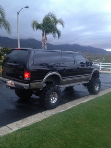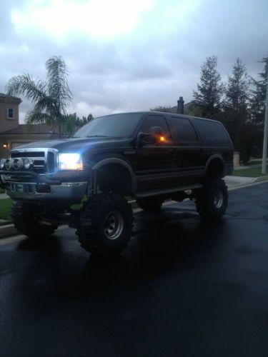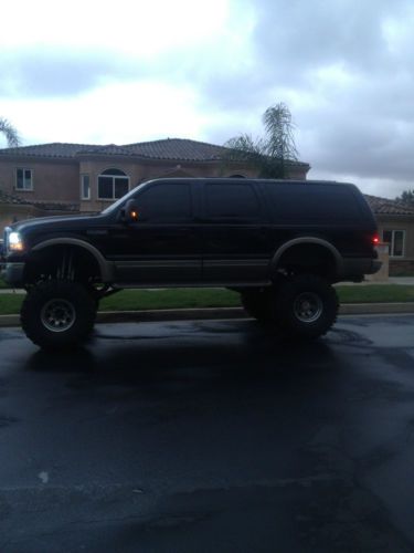 2000 Ford Excursion 4x4, updated 2005 bumper and grill, 56M, v10 motor, limited edition with tan leather, third row seat, 12" lift, 39.5" super swamp mudder tires, 16.5" x 12" mickey Thompson rims, 12K winch in bumper, procomp gas shocks, 4.10 gears, pioneer DVD player with monitor, rear monitor, HID headlights, four 130 watt procomp offroad lights, back up camera, 2000 watt stereo with 15" kicker L7, lots of $ put into truck, onroad only, well taken care of, oil changed with synthetic oil, garage keep, motor runs great, transmission runs great, purchased vehicle from dealer in 2001 and lifted truck in 2009