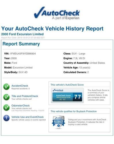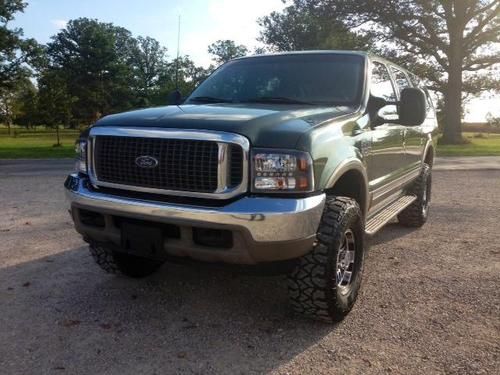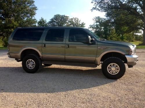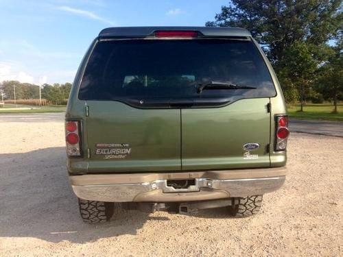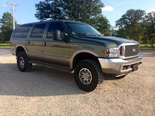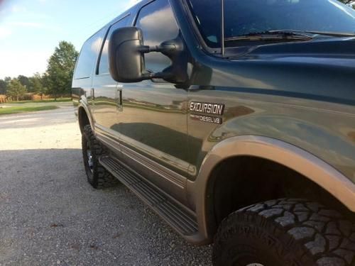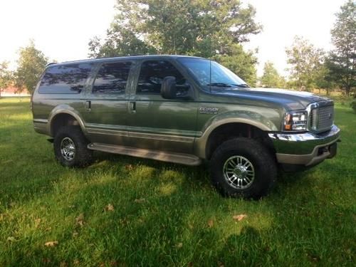 Very sharp, 100% rust free just in from California. Clean Vin check(see picture) 2000 Ford Excursion Limited with the 7.3 Powerstroke Turbo Diesel, 117,900 miles, 4x4, mild lift, (Not an overkill lift, but enough to have the cocky look!) almost new 35" Fierce Attitude tires on new MB polished wheels, Loaded up, power and heated seats, tan leather, 3rd row seating, dual climate control, cd player, tow package, tow mirrors, aftermarket headlights and tail lights, tinted windows, has your normal wear like minor scratches and a cpl dings etc., but this Excursion is super sharp and an absolute head turner anywhere you go, this Power Stroke starts right up and runs super strong, doesn't put down a drip of oil, it is bone stock and even has factory exhaust on it. Feel free to call or email with any questions. 260-414-0082.**I do have the ability to ship the Excursion anywhere in the US for very reasonable** Thanks and good luck!