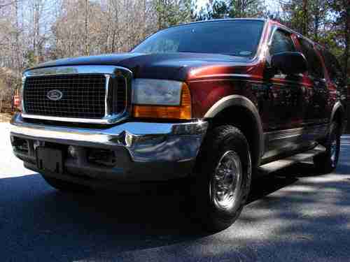 This is a ***2001 Ford Excursion 4wd Limited 7.3 DIESEL*** it is in excellent condition! Everything works exactly as it did when it was new. This is Excursion is in the best shape of any DIESEL we have had. It has brand new tires and leather. Trailer tow package looks like it was never even used. I have all service records through Ford on the Carfax. It has 178K and this diesel engine is barely broke in. The transmission shifts smoothly. It has 8 passenger seating with rear air/heating. The 4 wheel drive system works as it should. Rides and Drives like a NEW one. I will be happy to answer any questions you may have 770-468-5975. Please no phone calls after 9pm Eastern. If you are bidding from the state of GA....there is a $225 doc fee and all applicable sales tax must be included to winning offer.