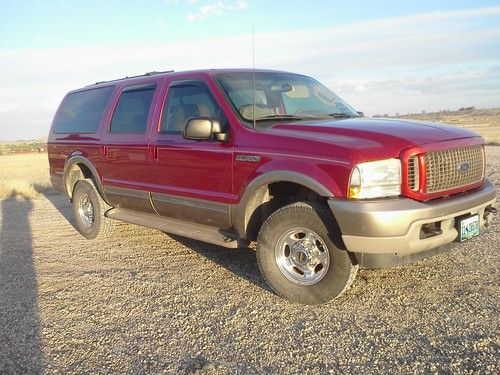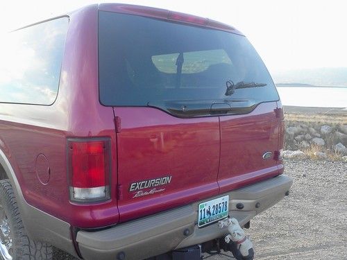 2003 Ford Excursion 7.3L with 226,000 highway miles. Turbo diesel Eddie Bauer Edition, two tone leather center bucket seats, two tone leather rear bench, custom front seats. Front and rear entertainment systems that can play the same movie or two different DVD's at the same time. Upgraded radio to include Bluetooth, cd player, Sirius and navigation. Edge performance chip for more power and better fuel mileage. This truck consistently gets in the 20's. Excellent tires. runs and drives great and looks great.