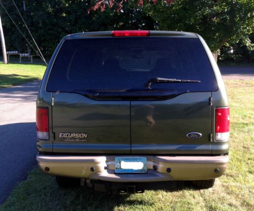 Nice clean 2004 Ford Excursion Eddie Bauer 4X4 6.0L Turbo Diesel Third row seat Leather, all power, heated seats Dual zone climate controls Rear DVD entertainment No rust, nice clean, one small dent below left taillight only. All the right service done. Head gaskets done 15K miles ago. New EGR cooler 15K miles ago. New ball joints, wheel bearings, steering stabilizer, tie rods. 2 new batteries SCT programmer 19MPG on highway Buyer responsible for pickup or delivery costs. Please call me at 860-322-0195 with any questions.