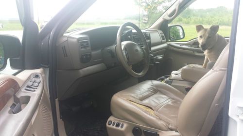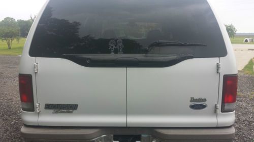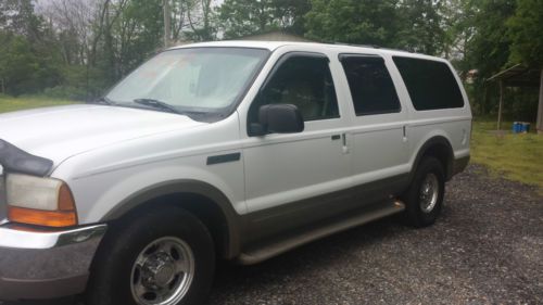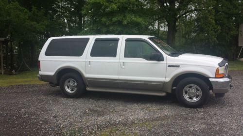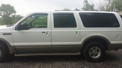 2000 Excursion 7.3 powerdtroke limited gently used with Only 453000 miles you won't beleiver what a good truck this is when you drive it dont let me miles scare you we have been personally using it for over a year and it has proven itself to be a very good excursion. Exterior: No previous damage or paint work that i have noticed it ahs a few rock chips on the hood and a small place by the drivers door handle burt nothing major it shines up well and is way above average for the year model it's a great looking ride. Interior: Carpets are nice leather has only minimal wear except for drivers seat and armrest which need to be repaired but overall you can tell it was wel lcared for if the seat was repaired it would be nice enough for anyone. Mechanical: POWERSTROKE runs great always fires right up no blowby dosen't use a driop of oil inbetween changeswe have been driving it for overa year and the only thing i have is done is replace a waterpump like i said it is very dependable . Transmision shifts great brakes are good front end is tight front tires are almost new rear have a lot of life left all windows and accessories that i know of work like they should . Thye only flaw i can think of is the rearend feels like the posi trac clutches feel like they bind a little especially on a hard left turn like i na parking lot or somwething it has been like that the whole time i've owned it and i drove it for several days before i ever noticed it it hasn't got any worse in over a year . A ford tech told me they make an additive that might help but i've never tried it but i would be glad to have it serviced and put some in if you would like. I wouldn't hesitate to drive this truck anywhere anytime so bid with confidence . my brotherin law has been using it for his demo most of the time we have opwned it often pulling a trailer delivering cars going to auctions etc you can contact him (houston) at 870-377-1636 or me at 870-692-0249 if you have any questions I have tried to describe this excursins as wel las i can but it is used and will be sold AS IS please ask any questions before bidding Good Luck
