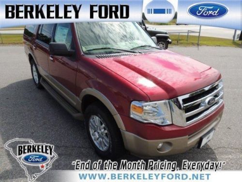 3.31 Axle Ratio, 3rd row seats: split-bench, Auto-dimming Rear-View mirror, Electronic Stability Control, Four wheel independent suspension, Front fog lights, Fully automatic headlights, Garage door transmitter, Heated door mirrors, Illuminated entry, Leather steering wheel, Low tire pressure warning, Occupant sensing airbag, Overhead airbag, Overhead console, Rear audio controls, Rear window wiper, Security system, Speed-sensing steering, Steering wheel mounted audio controls, and Traction control. Imagine yourself behind the wheel of this beautiful-looking 2014 Ford Expedition. This spirited machine can turn the everyday driver into a gearhead as they experience a whole new kind of acceleration and exceptionally potent power. New vehicle prices include all Ford Motor Company public rebates. Prices also include Ford Credit rebates and Ford Motor Company trade-in assistance rebates where applicable. Not all buyers will qualify. Prices also include a $295.00 Closing Fee. All prices are plus tax and tag fees.