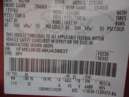 VIN (Vehicle Identification Number): 1FMEU63E49UA38837