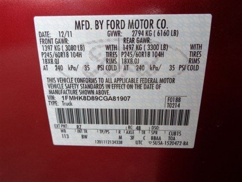 VIN (Vehicle Identification Number): 1FMHK8D89CGA81907