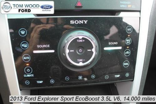 Explorer Sport, 4D Sport Utility, EcoBoost 3.5L V6 DGI DOHC 24V Twin Turbocharged, Automatic, AWD, Black, Dual front impact airbags, Dual front side impact airbags, Electronic Stability Control, Four wheel independent suspension, Front anti-roll bar, Fully automatic headlights, Heated front seats, Knee airbag, Leather, Low tire pressure warning, Occupant sensing airbag, Overhead airbag, Radio: Premium Audio System by Sony, Rear anti-roll bar, Speed-sensing steering, Split folding rear seat, and Traction control.