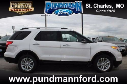 Call Now, 877-563-9167 Only At Pundmann Ford!! Get set to conquer the road in our outstanding 2014 Ford Explorer XLT FWD shown here in striking White Platinum. Our 7 passenger SUV is powered by a burly 3.5 Liter V6 giving you 290hp on tap while mated to a smooth shifting 6-Speed Automatic transmission to reward you with 24mpg on the open road. The bold design turns heads with chrome accents, streamlined molding and an overall handsome style. Our XLT is full of luxury with beautiful cloth front bucket seats with a six-way power driver's seat, second-row 60/40 split-fold-flat bench seat and a 50/50 split-folding third-row seat. The leather wrapped steering wheel has five-way controls for MyFord Sync offering you the latest news, weather and music through a premium 8 speaker audio system. Plenty of power points keeps everyone in the family plugged in and rear climate control is convenient. Superb lighting and storage options make this just right for all your family road trips. One of the safest SUV's on the market today, our Explorer has airbags, SOS post-crash alert, tire pressure monitoring, reverse sensing system and traction control. MyKey even allows you to set controls such as speed and volume for your teen drivers. What a great choice for an active lifestyle! Print this page and call us Now... We Know You Will Enjoy Your Test Drive Towards Ownership! Pundmann Ford in St. Charles, MO, is proud to be an automotive leader in our community. Since opening our doors, Pundmann Ford has maintained our solid commitment to our customers, offering the widest selection of cars and trucks and ease of purchase.Pundmann Ford, Since 1925