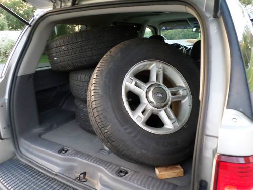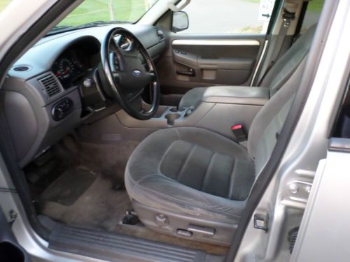 NO RESERVE!!!!! CLEAN CARFAX!!!! YOUR LOOKING AT A 2003 FORD EXPLORER XLT SILVER ON BLACK CLOTH INTERIOR WITH 24INCH DEVINO 700 SIRE CHROME RIMS WITH NEXEN N3000 255/30ZR24 TIRES. TRUCK HAS THE 4.0L V6 MAKING THIS TRUCK VERY FUEL EFFICIENT FOR A SUV. INTERIOR IS THE GOOD CONDITION NO TEARS, STAINS,OR RIPS IN THE SEATS OR OVERHEAD. THERE IS 1 MINOR RUST SPOT OVER THE PASSENGER SIDE WHEEL WELL AND 2 MINOR BLEMISHES AS SEEN IN THE PHOTOS. THERE ALSO IS A CRACK IN THE FRONT WINDSHIELD AS SEEN IN THE PHOTO AND CAN EASILY BE REPAIRED FOR $200 AT ANY GLASS SHOP. OVER ALL THIS IS A VERY CLEAN TRUCK FOR THE YEAR. A/C IS ICE COLD AND HEAT WORKS GREAT. HAS AN AFTERMARKET CD/STERIO. ALSO INCLUDED IS THE SET OF ORIGINAL TIRES & RIMS AS SHOWN MAKING IT ANY EASY CHANGE BACK TO ORIGINAL IF YOU PREFER THAT OVER THE AFTERMARKET RIMS THAT ARE CURRENTLY ON THE TRUCK.