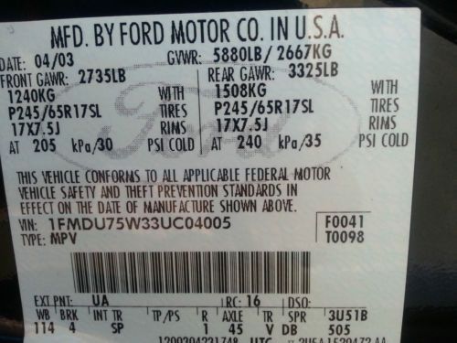 HI THERE, YOU ARE LOOKING AND BIDDING A ONE OWNER EXTRA CLEAN 2003 EXPLORER LIMITED SPECIAL ADDITION . SHE HAS BEEN PERFECTLY MAINTAINED AT THE LOCAL FORD DEALERSHIP , RECENTLY GOT NEW BATTERY AND COIL PACKAGE, PLUS SHE GOT 100K MAINTANCE DONE AT THE SAME DEALERSHIP. PLEASE DO NOT SCARE FOR THE MILEAGE SHE HAS A LOT TO OFFER FOR LONG TIME TO HER NEW OWNER. NO ACCIDENT IN HER HISTORY TOO, SO WHAT ARE YOU WAITING FOR , WE WILL KEEP THE RESERVE AT A VERY REASONABLE LEVEL, HURRY UP BEFORE SHE GETS SOLD, GOOD LUCK. PLEASE FEEL CONFIDENT ......
