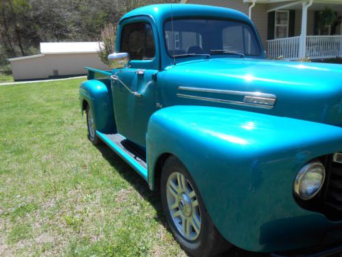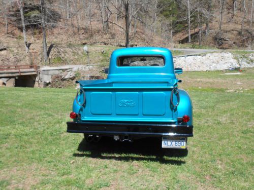 You are looking at a 1952 Ford F-100. ************************************** This pickup is setting on a 2002 4x4 Mountaineer Running Gear, it has all the look of the '52 but with the luxury of a newer vehicle. Clear West Virginia Title Black and Gray Interior Teal Exterior Cold Air Conditioning Heat Climate Control Tilt Wheel Cruise Control 4 Wheel disc brakes Electric Wipers Power Seats Power Windows CD-Player Tow Package 17 inch Tires Mostly New Chrome Beautiful Oak Wood Flooring in Bed Doesn't require Seat Belts These Pickups are very popular and increasing in value everyday. If you're going to cruise, why not cruise in style and Luxury If you have any questions, please feel free to contact me, Thurston Tabor at (304)-778-3425 I will be glad to answer any question you may have. Thanks For Looking and Good Luck!!!!!!!!! Truck is sold as is with no warranty. A 500.00 deposit is due when auction ends. If you are the last bidder, the truck is yours. If you don't intend to pay, then don't bid. Payment is due within 24 hours at close of auction, paypal or cash in person only. The winner is responsible for all, inspections, shipping, or pick up of vehicle. |
