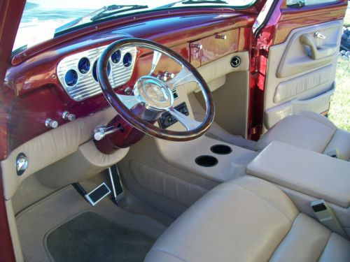 Wow what can I say this is one of the nicest quality built trucks that you will ever see. this all chromed out 2011 350 ZZ4 355 horsepower engine looks wonderful and runs even better it gas a 350 transmission hooked to a 10 bolt rear end. The paint is from PPG and the color is Storm Red Metallic and looks great but there is a few very small places from being driven and enjoyed for the last 10 years. The front end suspension is from a Plymouth Volarie all rebuilt and it rides and drives great as it should. The almost new 17in Boyd Cottington wheels are wrapped in a almost new set of 50 series of Nitto tires. The interior is a Leather custom built for this truck its a beige leather with bucket seats custom built console vdo digital gauges keep check on the vitals while a Ididit steering column and a Billet specialties steering wheel keep it in the road. As you can see this is a quality built truck and we are hoping it goes to a new owner thst will love and care for it as the owner has message me with any questions. |