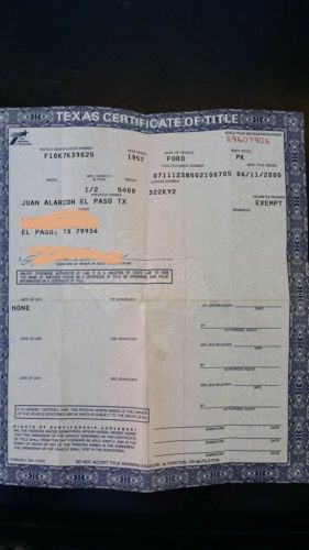 1957 Ford F-100 2WD RWD Short Bed Straight Side base model truck. I bought this in El Paso Texas last year off of eBay for a project this year that never materialized. It was purchased for a total tear down and rebuild into a bagged street rod. Motor looks to be original, frame and body numbers match. Looks to be all original frame, suspension, drive train but that is my assumption. Did not matter since it was going to be stripped down. Just needed the title and decent sheetmetal. It starts and runs, but with much anger and resistance, lol. It blows blue smoke, runs rough/misses, but idles after started. Carb is leaking out the seals but has no problem responding to the pedal and getting the motor to move the truck around. Shifts, brakes, turns... just not a street worthy vehicle at all. Great foundation for a build. Not need to stress over modifying this the way you want it! Worst part is the hood front structural bracing is rusted away... but this hood was going to be deck, angled, and rebuilt anyways for a new latching system so enough steel for that. Also the core support is solid, no rust but the latch assembly area has been rewelded and strengthened in its lifetime... but again that area was going to be reworked for the new hood setup... again no biggie for me. The rust in the cab corners, footsteps, under footwell bracing, front of bed at cab... etc... all very typical of this year truck and replacment panels are cheap and readily available. Open Texas Title. NO SHIPPING!!!! NO INTERNATIONAL BUYERS!!! Buyer is responsible for vehicle pickup. SOLD AS IS NO WARRANTY NO RETURNS NO SCAMS!
