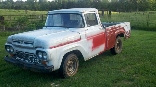Up for bid is a 1960 Ford F100. The truck has a clear title in my name. It is overall solid in fair to very fair condition. It does run and drive although I do jump it off occassionally. There are no major rust issues and there are a few dents and dings. I reserve the right to end the auction early as thee vehicle is up for sale locally. Please contact me with any questions you may have. No low ball bids will even be looked at. I know the value. This is a good restoration project for someone to make a nice truck out of.