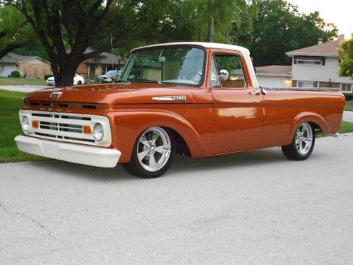 Hi Folks, Selling my 1962 Ford F100 unibody shortbed pick up. Very nice solid Texas truck, no rot or patch panels. Paint looks very nice, but expect to find minor dings and 1 scratch in the right rear lower quarter panel. Steel bed floor painted black. Recent body off restoration done. Mild built 289 Ford with Edelbrock aluminum cylinder heads, roller camshaft, quiet gear drive, Edelbrock intake and carb, headers, chrome water pump, chrome fuel pump, electric vacuum pump, custom aluminum radiator, and electronic ignition. Rebuilt C6 transmission. 8 inch Ford rear end with 3:55 gear. TCI Mustang II front suspension with manual rack and pinion, power disc brakes, 2 inch dropped spindles and American Racing 17" custom alloy wheels. Truck runs and sounds great, very nice driver. Feel free to call or text with any questions. I reserve the right to end the auction at anytime because the truck is listed locally. No third party sales. Thanks. Art 630 664 1161