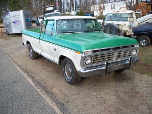 This truck is being re-listed again to Dead Beat Low-Life Bidder that makes it bad for others read foot note at bottom Here Today I have a beautiful 1973 Long Bed F-100 trucks for sale that is 100% rust free from Arizona with clear Az. title. It has a 360, 4 speed granny gear transmission, A/C that does work, Power Steering. Truck has been repainted as you can see in picture of the tailgate in difference of the original tailgate and new color, also speaking of paint you can see on the topside of the bed where it was repainted with some kind of camper shell on bed. This tailgate still shows the Original Ford sticker where it was purchased new from Ford dealership in Wickenburg, Az. +++ One picture shows the marking from Ford at the Factory showing OK inside the bed which is rare to see anymore. Look @ the bed floor which has seen not much use and even the bed bolts not even showing any wear.. Next hood on truck has 2 scrapes as seen in picture. Doors open/close like new, open/close the hood shuts like new as well, tailgate shuts like opens/closes like new and even at bottom of gate is very straight as well. When driving this truck it shifts, steers and rides like new, mileage on it 36,188 can be close since everything is so tight but cannot say 100% on that. Tires are in very good condition, all glass etc… Interior is very clean with exception on the side of the seat with a tear on the side which I would get fixed before got and worse, door panels are nice as well as the instrument panel and all gauges do work 100%. We carry many other parts for 73-79 Ford Trucks www.flashbackf100s.com as well as all other years for 1948-2008 trucks as well as the little Ranger Truck division, any ?'s on Ford Trucks/Parts 336-421-3979, Home of the Real Ford Truck Parts where we live, breathe and bleed Ford Trucks. as far as shipping we will help your shipper load, will help you load or we can haul for you and for us to haul, first 200 miles from our yard is free, if being shipped, truck will have to be paid for and all Cashiers checks, Business checks etc. will have to be cleared in the amount of 10 days before being released, another feature you only will find @ Flashback F100's is we offer a 10% discount on any parts that you might need for above vehicle as long as original purchaser. One other note since I ran out of picture room rear bumper on drivers side has a slight bend in it Last Note is especially for you Mr. Wiles in Va., Oh yes I have all info I need to and I will prosecute you for bidding/buying said vehicle since it was left here instead of us bringing to a swap meet to sell, Next all the others now that have a 0 feedback now has to call me in person since your a low life dead beat and have made it bad for all the others, I tried to be fare since like a lot of us here had to start with 0 feedback and was given a chance, I hope your proud of yourself especially since no response after from you period so now it's bad for everyone that has to suffer from your for whatever reason you think. I am not here to play games, well I leave it there,