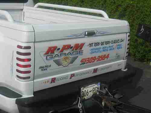 The pinstriping is done by hand and was done by the late Gary Wills, "The Pioneer", and has been on the truck for many years. I will not be removing the pintstriping as part of this sale. Getting such a good truck, this cheap, if you don't like it...your elbow grease is free and have at it. The lettering is for my shop, so this is a REAL "shop truck", used daily to advertise my shop, pick up parts, tow the show trailer (1700 lbs), tow and haul finished and project bikes...you name it, it did it and it never complained.