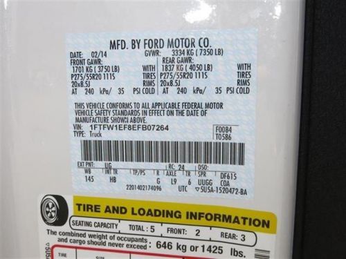 VIN (Vehicle Identification Number): 1FTFW1EF8EFB07264