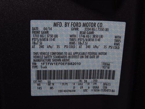 VIN (Vehicle Identification Number): 1FTFW1EF0EFB82010