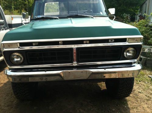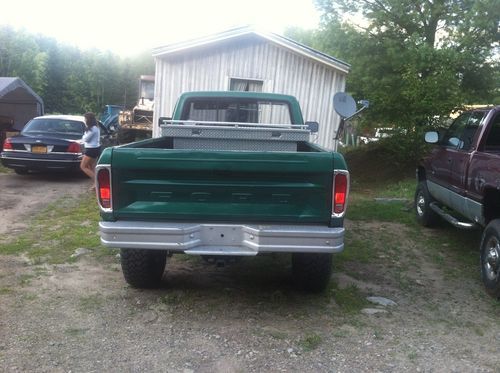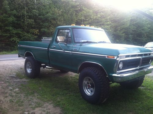 this truck is a 1976 ford f250 ranger XLT it is equipped with the highboy package. it has a factory 3 inch lift and sits on 37 inch hankook dynapro's. one of the tires is brand new and has less than 25 miles on it the other three are a little weather checked from sitting but have about 85% treed life left, the only reason i had to buy one tire is because i ran over a nail. the truck has a 390 power plant that is built and runs like new. the motor has a newer edelbrock carburetor and hooker headers, it also has an accel ignition system, the transmission is a 4 spd that shifts as an old truck transmission should . underneath the frame on the truck is solid there's no rust,rot nothing bent the axles are factory danas and they turn smooth and work as they should as far as cab mounts one of them is brand new and one of them isn't in the best of shape (as shown in pictures) but still works fine. the paint on the truck around the hood area is coming off in some spots but still looks good overall its a pretty solid truck i have been driving it for the past few months and its really a fun truck to drive it goes down the road straight and is a real head turner. the toolbox in the back of the truck will go with it unless you have no desire to have it at that point i will keep the box this truck is in good shape although it is not a brand new vehicle and is being sold as is. if you would like any other pictures or have any questions you can call or text me at (518)-637-1511