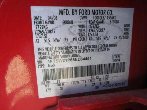 VIN (Vehicle Identification Number): 1FTSW21P66ED64451