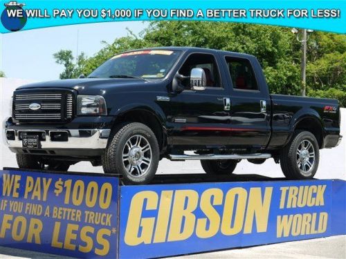 WWW.GIBSONTRUCKWORLD.COM*2007 Ford F250 Outlaw Crew Cab Powerstroke Diesel 4X4* 1 year REAL FREE BUMPER TO BUMPER WARRANTY honored anywhere in the United States with our exclusive 15 DAY RETURN/EXCHANGE POLICY! That is how confident we are in our trucks! Do not make a $3K+ mistake, B4 you buy a used truck demand to see shop bills & have the truck inspected by a 3rd party! Demand to see the IDS test results on all 6.0L and 6.4L engines! Riding on a like new set of Michelins with 20 inch wheels, $300 6 disc CD player, $250 power sliding rear window, $120 adjustable pedals, $85 upfitter switches, dual power leather seating, nerf bars, steering wheel controls, tilt steering, cruise control, keyless entry with alarm, towing package, bed liner, power windows, power mirrors, power door locks*Gibson is the only dealer that gives a REAL FREE 12 MONTH BUMPER TO BUMPER WARRANTY VALID ACROSS THE UNITED STATES, 12 MONTHS FREE MAINTENANCE ($1,000 VALUE!) FROM OUR 23 BAY SERVICE DEPARTMENT AND OUR EXCLUSIVE 15 DAY RETURN/EXCHANGE POLICY! It sounds too good to be true, but it is true! We will pay you $1,000 if you find a better truck for less, Gibson Truck World is Nations ahead of the competition! AT GIBSON TRUCK WORLD AN EDUCATED CONSUMER IS OUR BEST CUSTOMER**Repair Description: Total Invested = $3,707.74*10 Mile Road Test, 135 Point Inspection, Lube, Oil & Filter, Replaced EGR & Oil Coolers, Degas Bottle & Cap, Flush Cooling System, Change Oil & Filter, Clean Turbo, Replaced Rear Main Seal & Gasket, Replaced Front Pads, Turned Rotors, Replaced Rear Pads, Calipers & Turned Rotors, Replaced EGR Valve, Replaced Left Front Seat Lumbar, Cold Diesel Test, Replaced Wiper Blades, Cleaned & Oiled Air Filter, Replaced 3rd Brake Light Bulb, Balanced Tires, Alignment, Installed Tailgate CapBattery Condition Test : Good, Alternator Condition Test : Good*Labor time quoted by All Data Universal ShopKey* Gibson Truck World in Sanford, FL has the lowest price for used trucks period! Gibson specializes in pre-owned Ford trucks, Dodge trucks, Chevrolet trucks, GMC trucks, Jeeps and SUVs. Gibson Truck World sells, ships trucks across the country & worldwide. We have a large selection of F150, F250, F350, F450, F550, RAM 3500, 2500, 1500 Chevy or GM 3500, 2500, 1500 quality pre-owned pickup trucks.