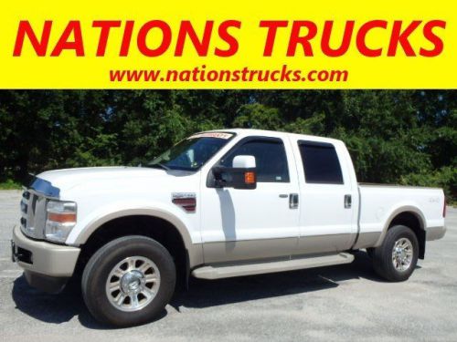 2008 Ford F250 King Ranch Crew Cab Powerstroke Diesel 4x4, rides on four meaty tires, FLAWLESS ONE-OWNER with only 41K miles, that's an average of just over 8K miles driven per year, fully inspected, serviced and certified with Nations Trucks ONE YEAR BUMPER TO BUMPER WARRANTY! This gorgeous, top of the line three-quarter ton pickup is like brand new inside and out and she comes fully equipped with alloy wheels, spray-on bedliner, running boards, towing package, power sliding rear window, keyless entry, woodgrain trim interior with luxurious rawhide leather seating, power windows, power doorlocks, power mirrors and seats, cruise control, tilt steering wheel, CD/MP3 player, adjustable pedals and much much more! Don't miss your chance to own this flawless, low mileage F250 for thousands less than anywhere else in the world! Visit Nations Trucks today and let us help you find the perfect truck for both you and your budget! REPAIR DESCRIPTION: 15 Mile Road Test, 135 Point Inspection, Lube Oil and Filter, Battery Test: Good, Full Detail, Total Invested = $455.00, Labor time quoted by All Data Universal Shop Key*see dealer for details All certified Nations Trucks have been fully inspected and serviced and come backed by our ONE YEAR BUMPER TO BUMPER WARRANTY! We look forward to earning your business, please call 866-535-5519 to schedule your test drive or visit us anytime at www.NATIONSTRUCKS.com
