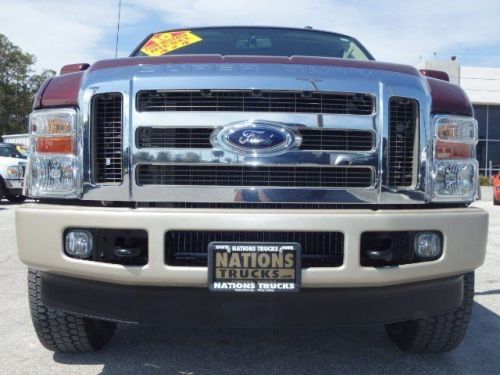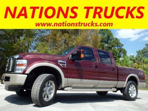 2010 Ford F250 King Ranch/FX4 Crew Cab Powerstroke Diesel 4x4, only 57K miles, that's an average of just over 14K miles driven per year, fully inspected, serviced and certified with Nations Trucks ONE YEAR BUMPER TO BUMPER WARRANTY! This gorgeous two-tone three quarter ton pickup is absolutely flawless inside and out and she comes fully equipped with 20" alloy wheels, bedliner, running boards, towing package, power sliding rear window, keyless entry, woodgrain trim interior with luxurious rawhide leather seating, power windows, power doorlocks, power mirrors and power heated memory seats, cruise control, tilt steering wheel, AM/FM stereo with 6 disc CD/MP3 player, Microsoft SYNC, adjustable pedals and much much more! For a better truck at a better price visit Florida's new truck alternative Nations Trucks today and let us help you find the perfect truck for both you and your budget! *Repair Description: 25 Mile Road Test, 135 Point Inspection, Lube Oil and Filter, Battery Test = Good, Installed New Bed Liner, Full Detail, Total Invested = $610.00...Labor time quoted by All Data Universal Shop Key**see dealer for details All certified Nations Trucks have been fully inspected and serviced and come backed by our ONE YEAR BUMPER TO BUMPER WARRANTY! We look forward to earning your business, please call 866-535-5519 to schedule your test drive or visit us anytime at www.NATIONSTRUCKS.com