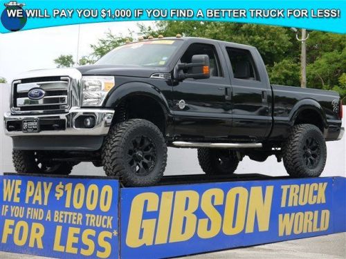 WWW.GIBSONTRUCKWORLD.COM*2012 Ford F250 XLT Leather Crew Cab Powerstroke Diesel 6 Inch Lifted Monster 4X4* Carfax 1 Owner with powertrain warranty, good thru 10/26/17 or 60k miles and diesel engine warranty, good thru 10/26/17 or 100k miles. Also comes with 1 year REAL FREE BUMPER TO BUMPER WARRANTY honored anywhere in the United States with our exclusive 15 DAY RETURN/EXCHANGE POLICY! That is how confident we are in our trucks! Do not make a $3K+ mistake, B4 you buy a used truck demand to see shop bills & have the truck inspected by a 3rd party! Riding high on $5,000 of 6 inch lift kit with 37 inch Toyos and 20 inch Helo wheels, $850 upgraded leather, $120 adjustable pedals, CD player, nerf bars, steering wheel controls, tilt steering, cruise control, keyless entry with alarm, towing package, power windows, power mirrors, power door locks*Gibson is the only dealer that gives a REAL FREE 12 MONTH BUMPER TO BUMPER WARRANTY VALID ACROSS THE UNITED STATES, 12 MONTHS FREE MAINTENANCE ($1,000 VALUE!) FROM OUR 23 BAY SERVICE DEPARTMENT AND OUR EXCLUSIVE 15 DAY RETURN/EXCHANGE POLICY! It sounds too good to be true, but it is true! We will pay you $1,000 if you find a better truck for less, Gibson Truck World is Nations ahead of the competition! AT GIBSON TRUCK WORLD AN EDUCATED CONSUMER IS OUR BEST CUSTOMER**Repair Description: Total Invested = $5,793.14*10 Mile Road Test, 135 Point Inspection, Lube, Oil & Filter, Installed Leather, Mount & Balanced 4 New Tires & Wheels, 37X13.50R20 Toyo, 20 Inch Helo, Alignment, Installed Lift Kit, Installed Nerf Bars, Replaced Air Filter & Wiper BladesBattery Condition Test : Good, Alternator Condition Test : Good*Labor time quoted by All Data Universal ShopKey* Gibson Truck World in Sanford, FL has the lowest price for used trucks period! Gibson specializes in pre-owned Ford trucks, Dodge trucks, Chevrolet trucks, GMC trucks, Jeeps and SUVs. Gibson Truck World sells, ships trucks across the country & worldwide. We have a large selection of F150, F250, F350, F450, F550, RAM 3500, 2500, 1500 Chevy or GM 3500, 2500, 1500 quality pre-owned pickup trucks.